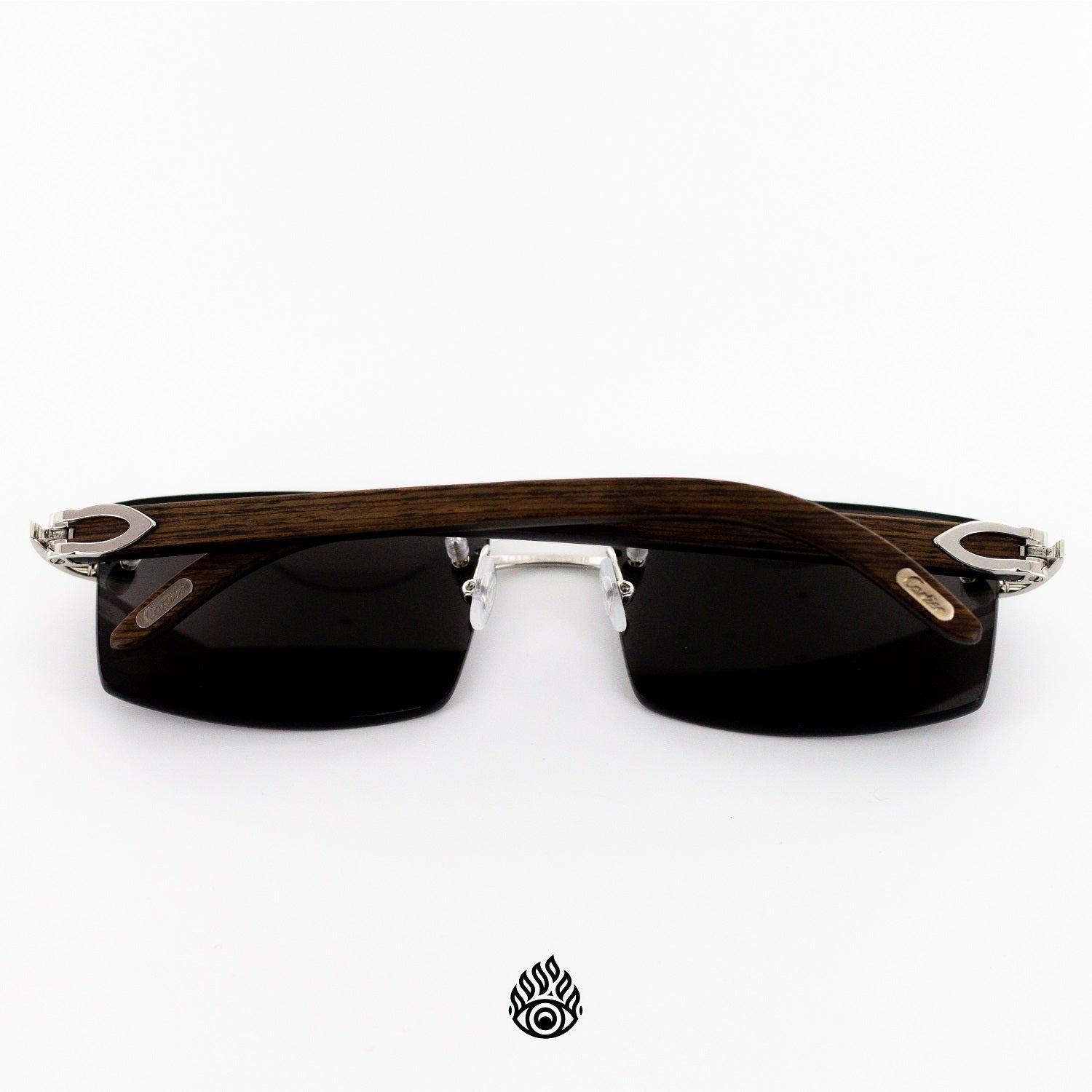 Cartier Dark Wood Glasses with Platinum C Decor and Blackout Lens