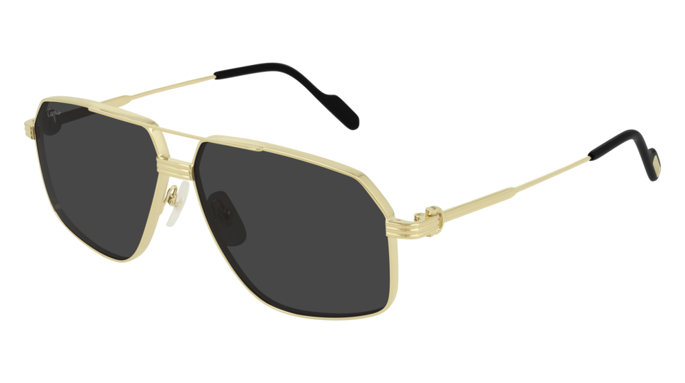 Cartier logo lasered on metal temple tips and Double C Décor signature on the nose pads.