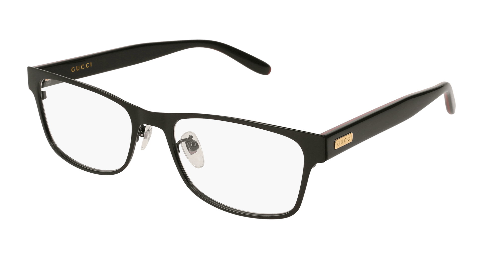 Unisex frame in titanium for a lightweight structure. Classic color palette for an elegant everyday look. Gucci lettering logo on titanium or gold plaque.