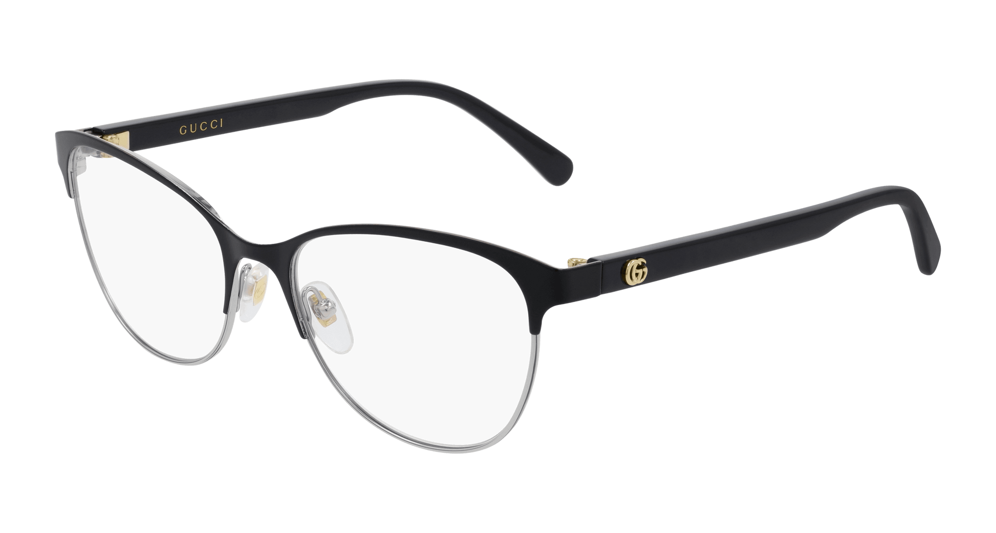 Best Seller Carry over concept from SS17. Classic cat-eye metal shape for an elegant understated look. Gucci interlocking logo on temples. Feminine color palette; House Iconic timeless colors are highlighted by the transparent tones of the temples.