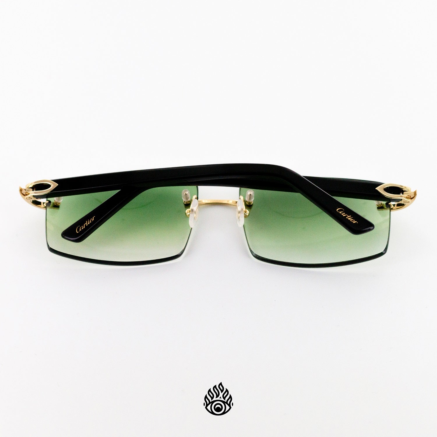 Cartier Black Acetate Glasses with Gold C Decor & Green Lens