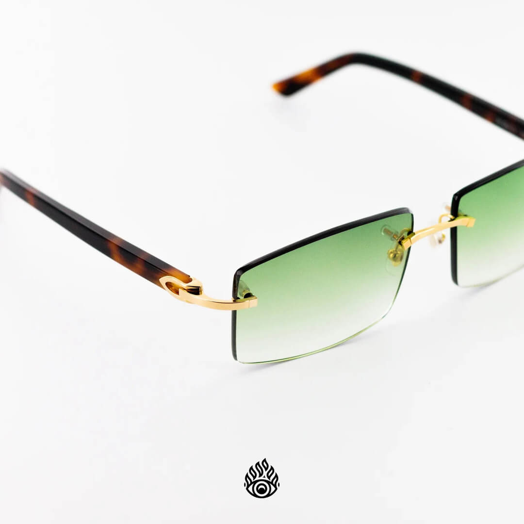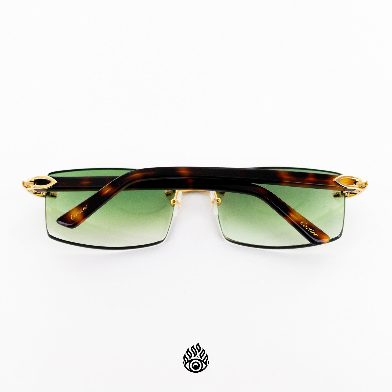 Cartier Tortoise Acetate Glasses with Gold C Decor & Green Lens