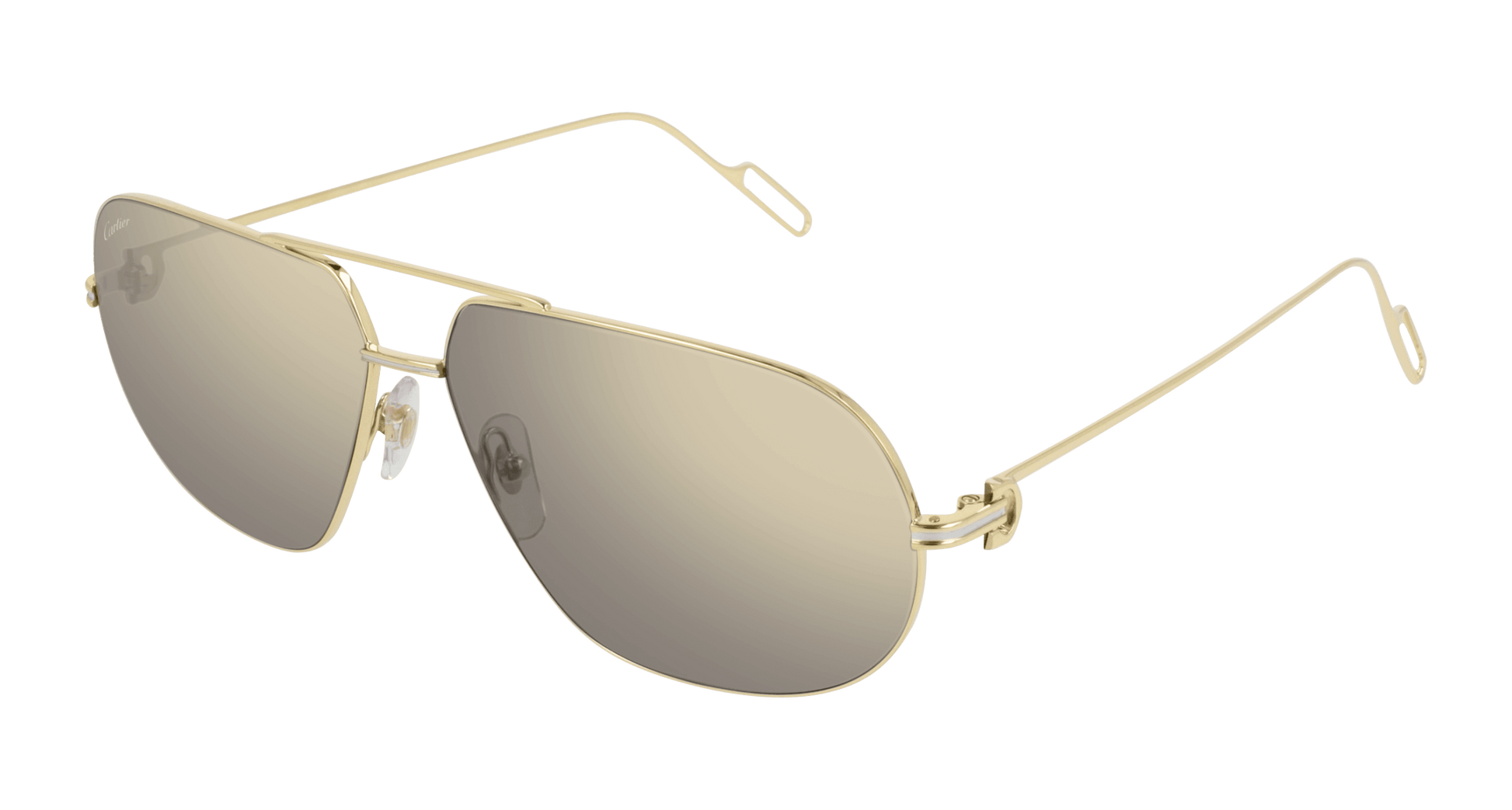 Colourful lenses with light gold flash effect and Cartier dedicated red anti-reflective coating. Double C Décor signature on the nose pads.