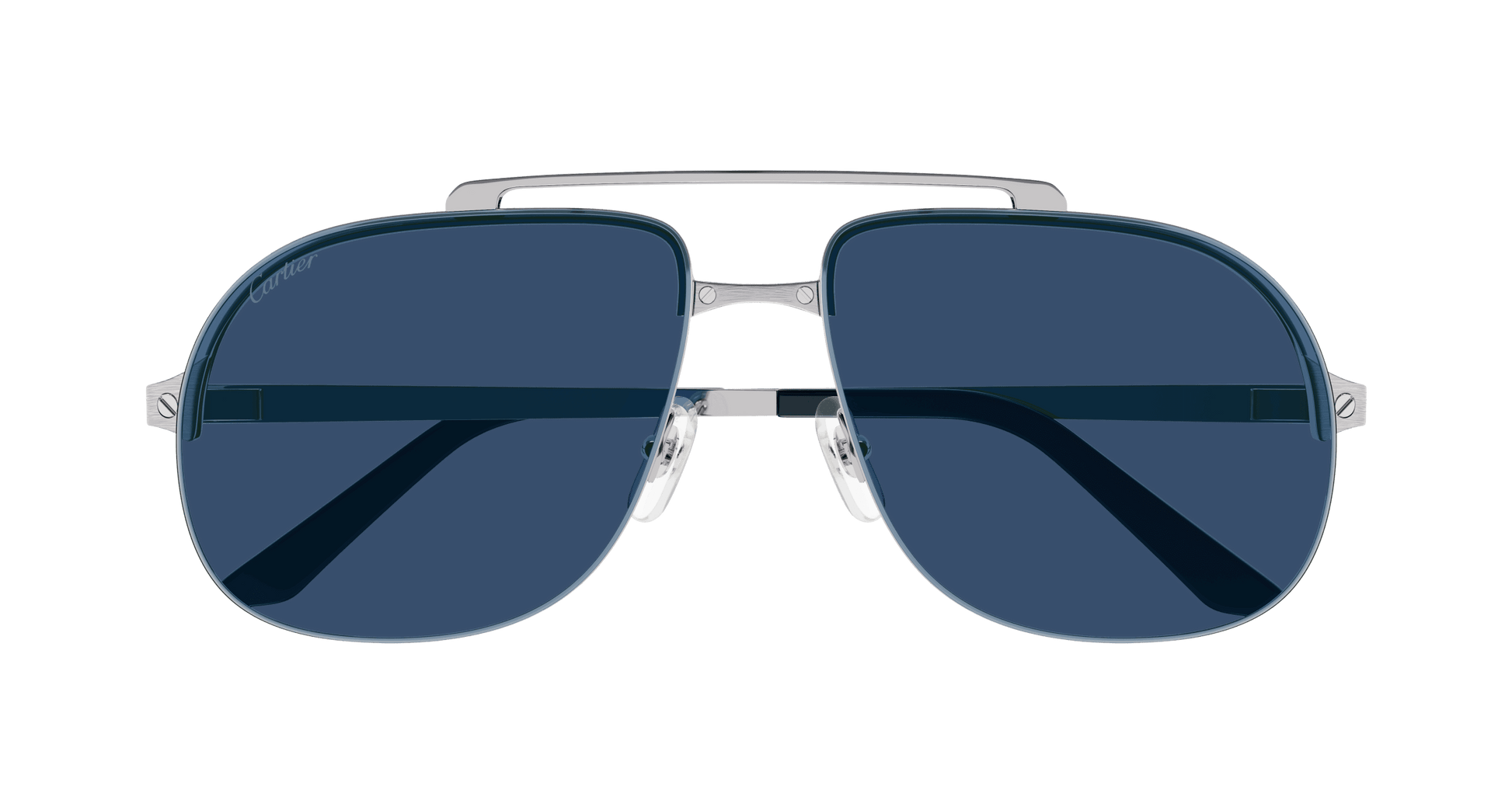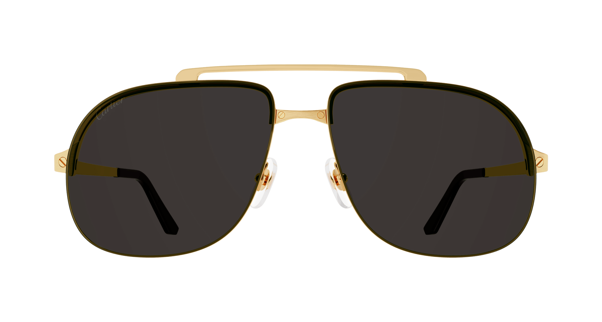 Masculine navigator shape to complete the Santos Evolution family with a bold design. New innovative construction characterized by a floating structure and enriched by iconic Santos screw on the bridge and temples. Precious finish in gold and platinum. Cartier logo engraved on temples and Screw décor on temple tips.