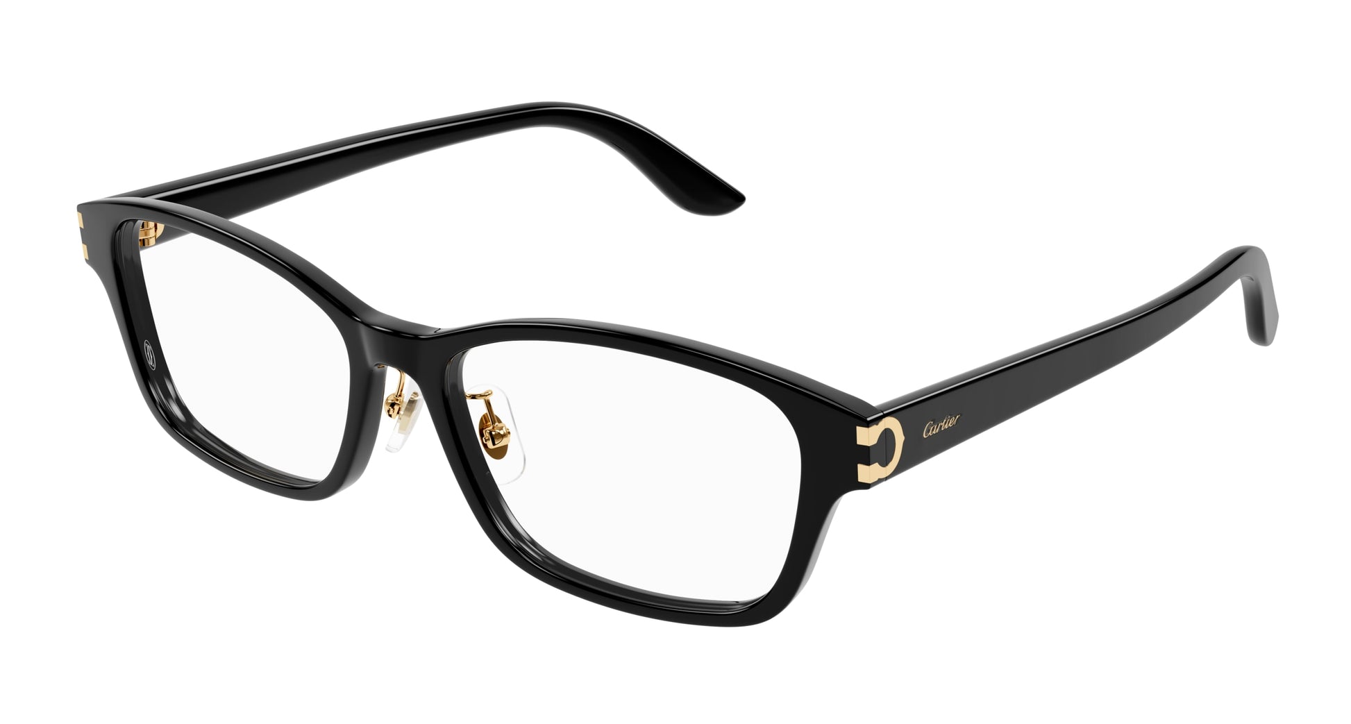 Additional squared shape to the easy to wear acetate construction with the C de Cartier as aesthetical component of the hinge. Cartier logo engraved on temples. Precious metal details finished in gold or platinum.