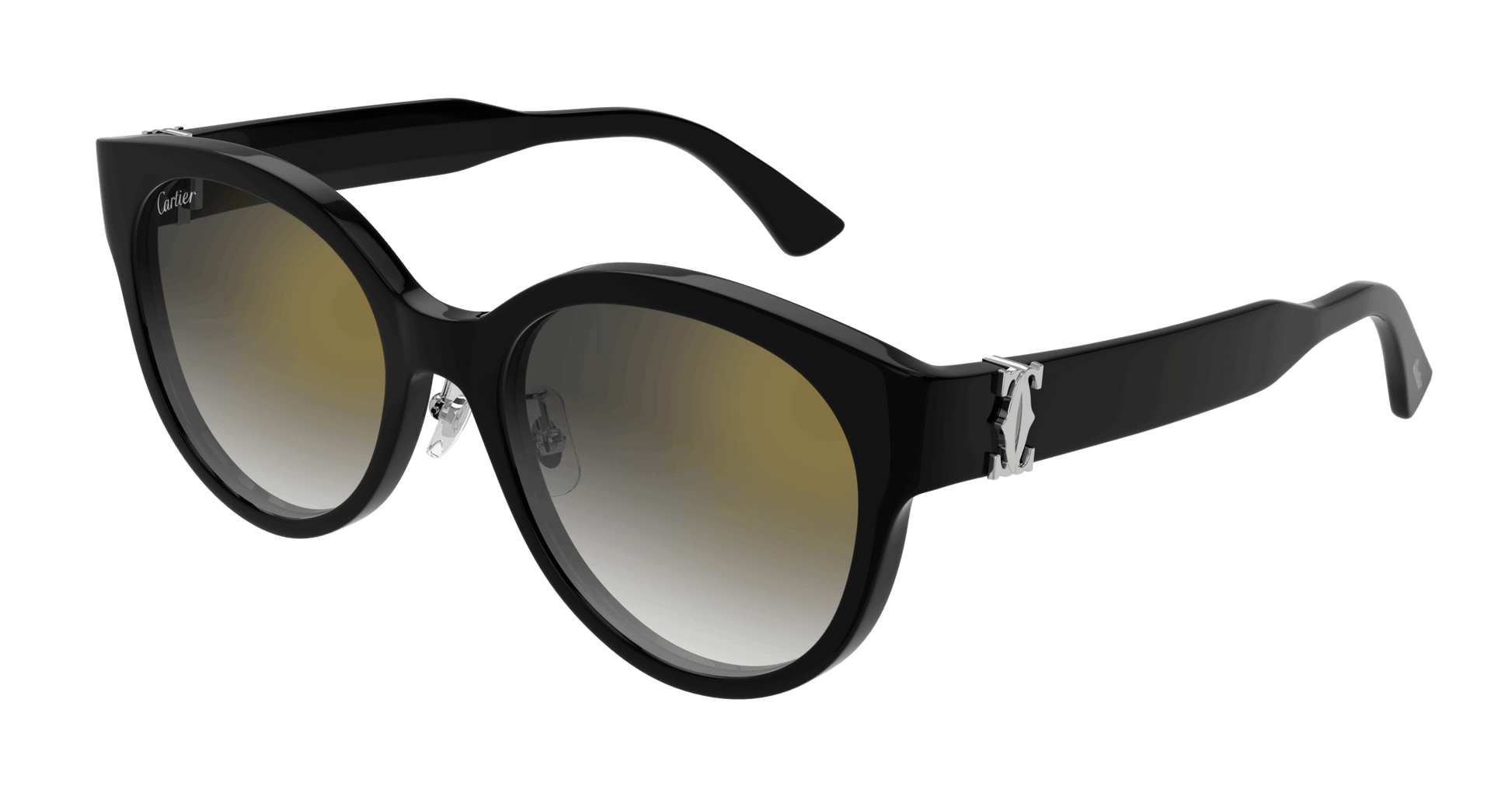 Soft cat-eye feminine shape enriched with iconic Double C detail being an aesthetical and a functional component of the hinge. Light acetate easy-to-wear construction embellished with the Double C detail on the hinge. Precious finish in gold or platinum, Cartier logo engraved on the temple tips and Double C Décor on the nose pads.