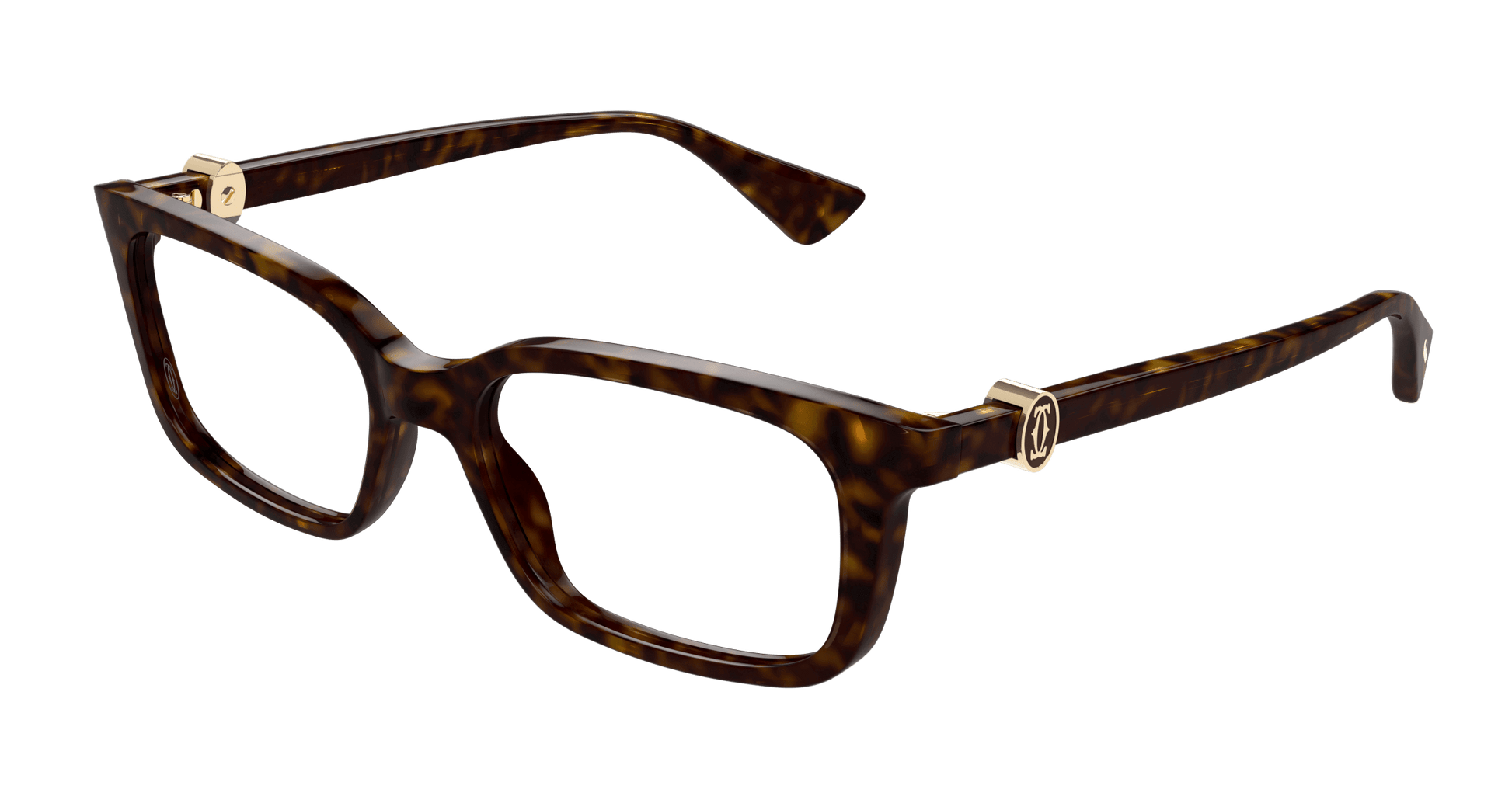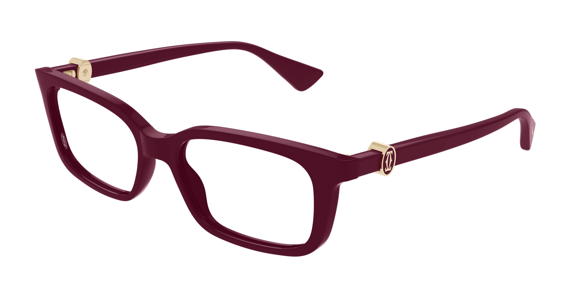 Additional rectangular shape of the light acetate Double C aesthetic perfect for a feminine and easy-to-wear look. Light temples enriched with the iconic Double C medallion embellished by hand-made enamel details ton sur ton with the acetate frame. Precious finish in gold and Cartier logo engraved on the temple tips.