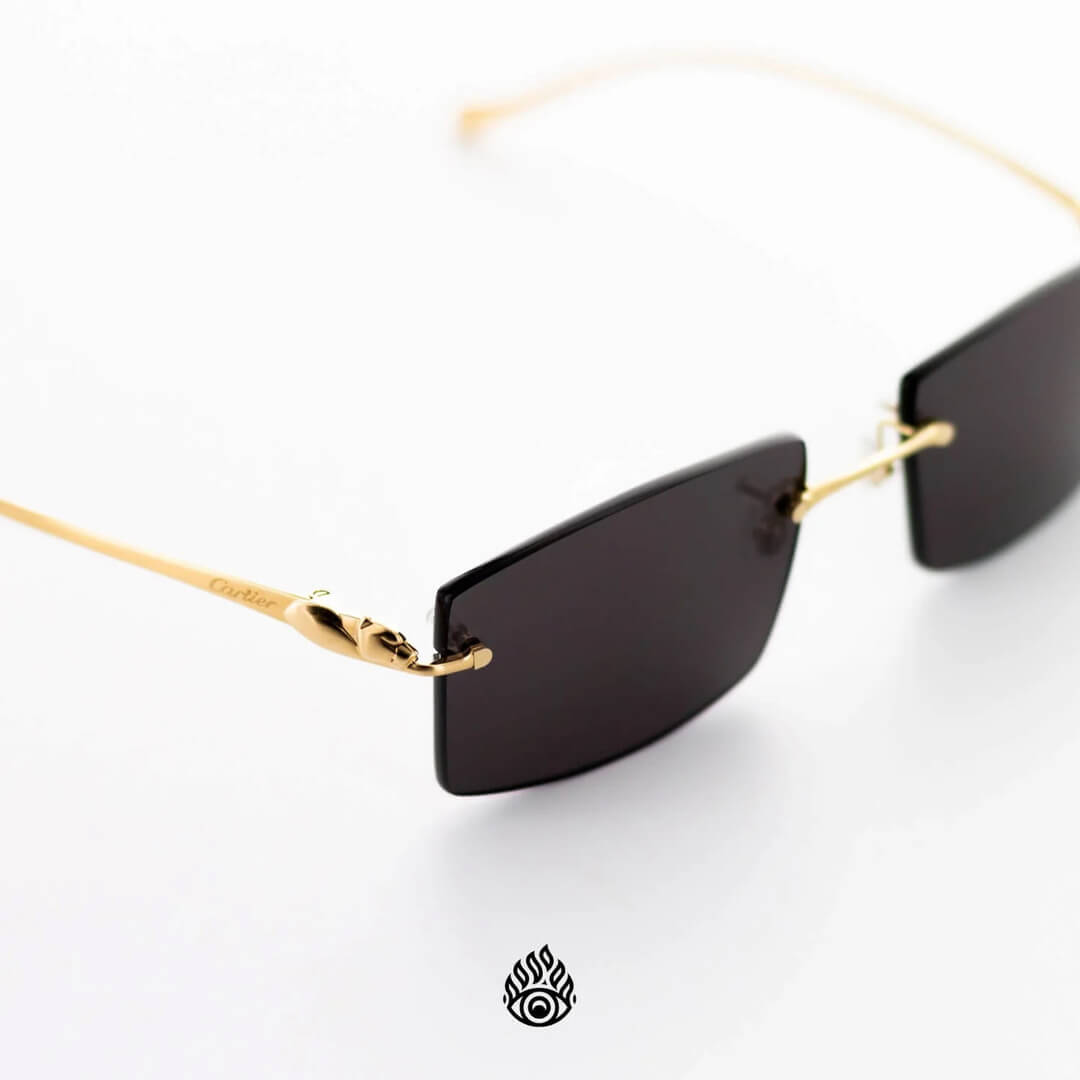 Classical rimless shape, featuring the emblematic Panthère de Cartier for an audacious and glamorous design. Precious pouncing panther sculpture on a slender temple with pure and dynamic lines. Precious finishes in gold or platinum