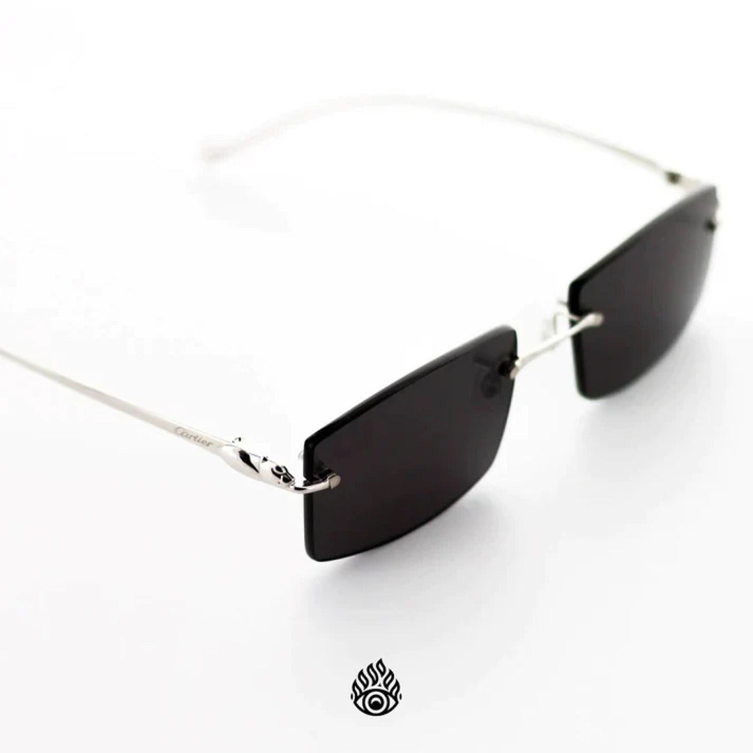 Panthère De Cartier Glasses, Gloss Platinum Detail, Black Lens