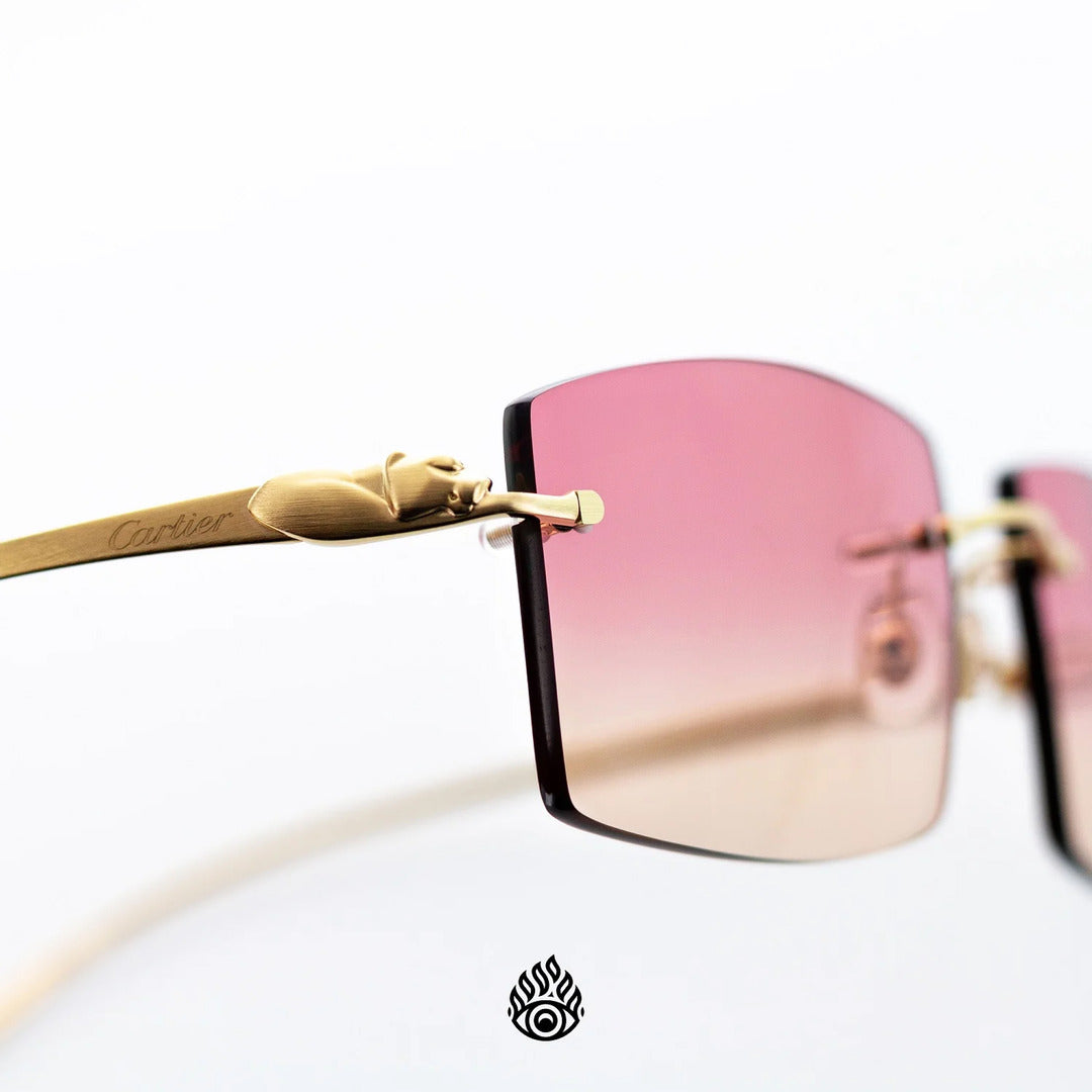 Panthère De Cartier Glasses with Gold Detail & Sunset Lens